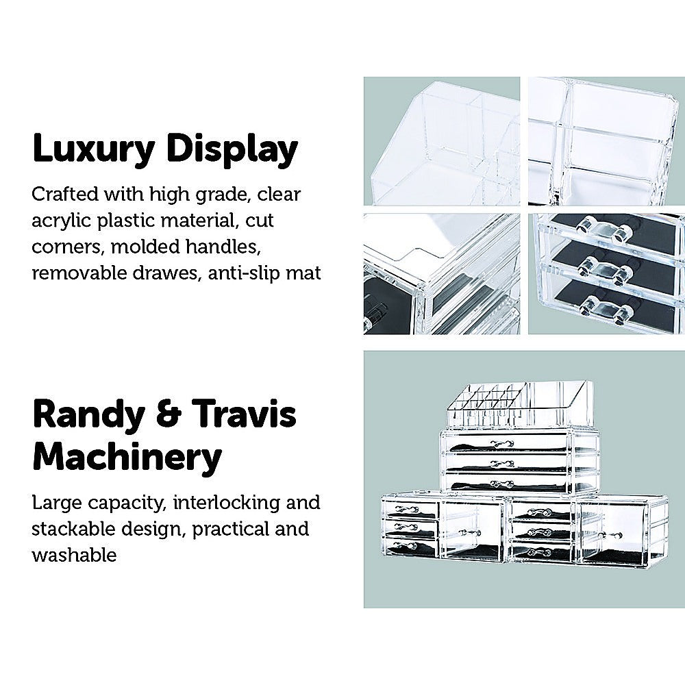 You deserve luxury and beauty- and you can have these every day when you can actually find all of your items easily in this sleek cosmetic organiser by Randy & Travis Machinery. It's crystal clear, well made, and designed to accommodate every little thing you could wish for. Stash your jewellery and accessories, too – and you'll have everything right at hand to complete your morning routine. Specially designed compartments hold brushes, powder, and lipsticks, while drawers are the perfect spot to store jewellery and cosmetics.