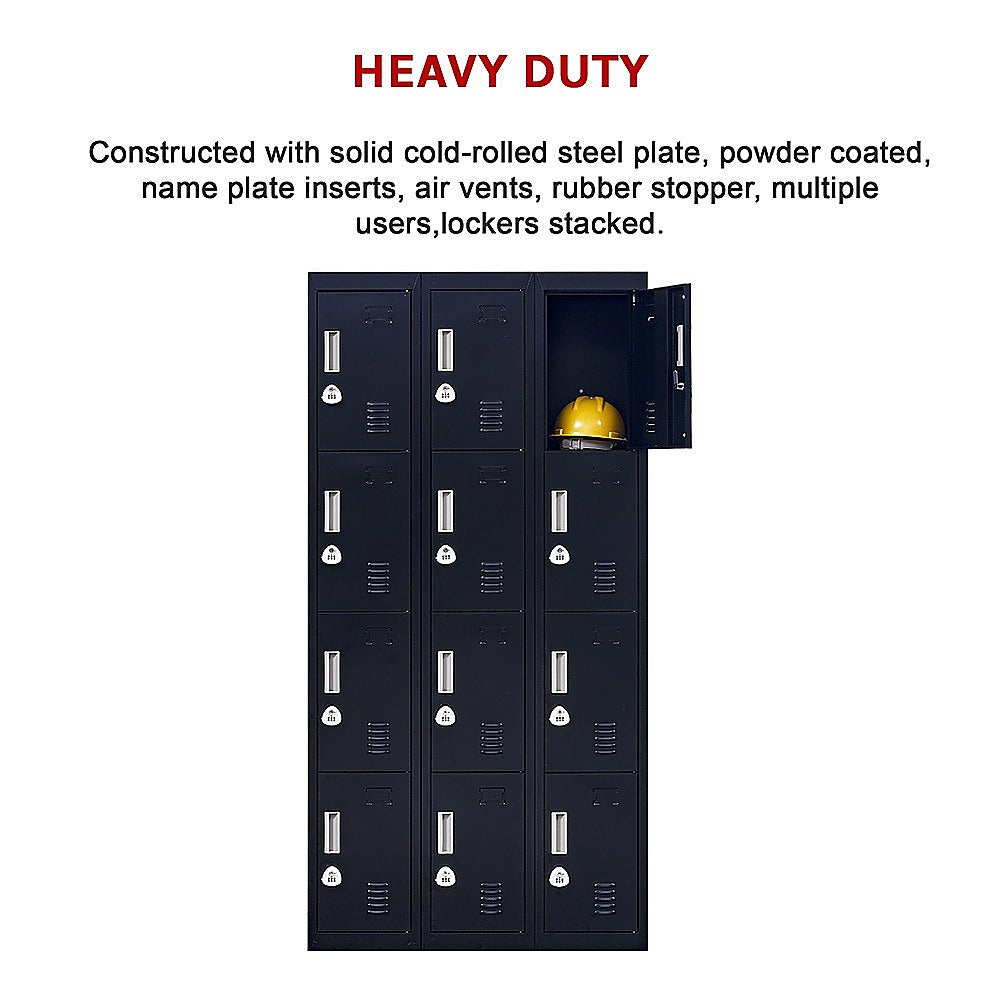 The unit has 12 individual locker compartments stacked in a 3 x 4 grid. Each locker provides ample space for personal items and can hold up to 30 kg. Built-in ventilations slits keep the stored items from smelling musty. Users may also customise their locker with a name tag or label in the designated slot provided. This comes comes with 3-digit combination lock to ensure safety of your belongings.