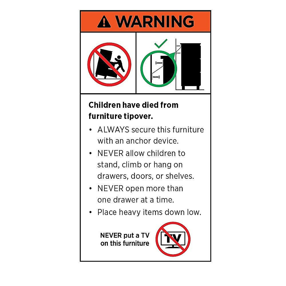 • NEVER allow children to stand, climb, or hang on drawers, doors, or shelves.