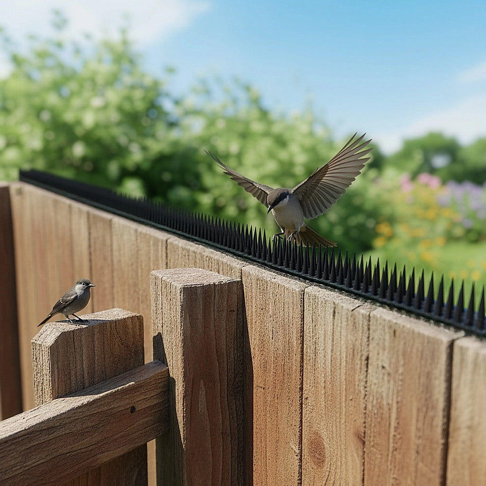 This spiked wall deterrent keeps birds at bay! All you need to do is place the spiked fence in locations where they perch or gain entry. The material is made up of hard plastic which won't hurt but will give a slight pinch to animals that will deter them. Apart from homes, this product can also be used on street lamps, chimneys, commercial buildings, and even restaurants where birds or cats are likely to stay.