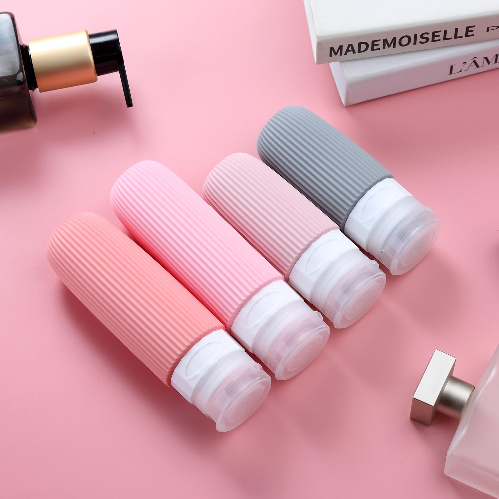 16-Piece Travel Bottle Set with Leak-Proof Silicone Squeeze Bottles Reusable Toiletry Containers for Shampoo, Lotion, Makeup Remover (Pink)