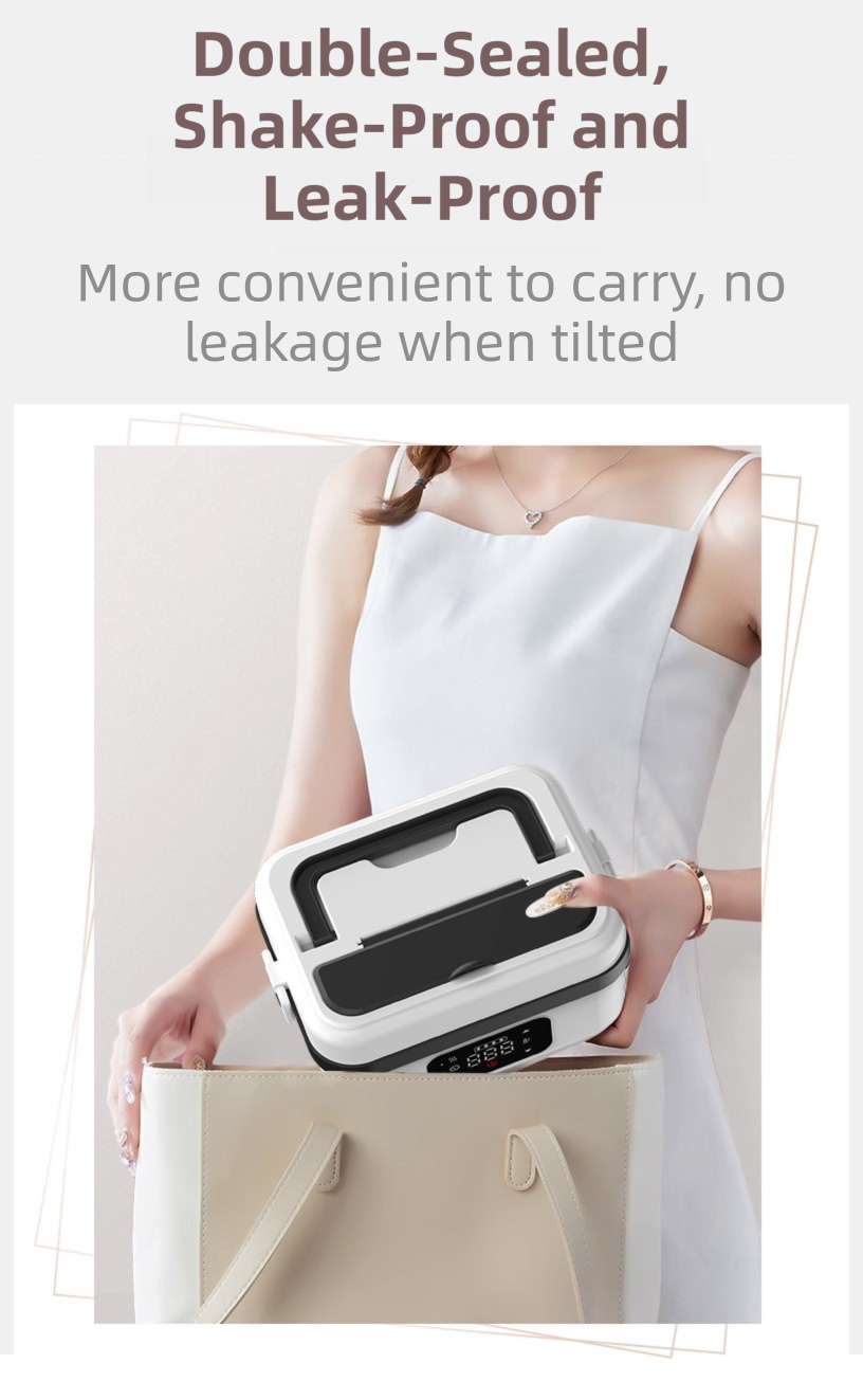 Enjoy a warm meal anywhere with this convenient rechargeable lunch box. Designed for students and busy professionals, it features innovative waterless heating technology for quick, silent warmth without steam or odors. The 304 stainless steel liner provides ample 1L capacity and is complemented by a cold storage ice pack option for keeping food fresh until heating. With double sealing and a portable design, it's the ultimate solution for taking meals on the go.