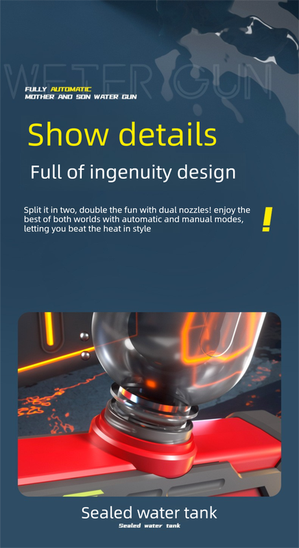 Dominate your next water fight with this versatile orange and white water blaster. The "Mother and Son" modular design is a game-changer; simply slide the smaller pistol off the main body to dual-wield or hand it to a teammate. The electric mechanism in the main unit provides rapid-fire action, while the manual sub-gun requires no batteries, serving as a reliable backup.