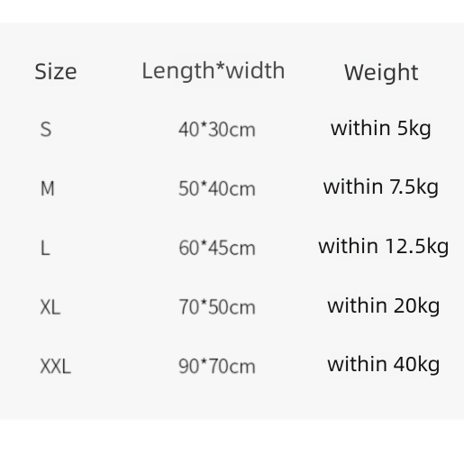 XXL: 90*70cm Approx. 290g Up to 40kg (80 Catty)