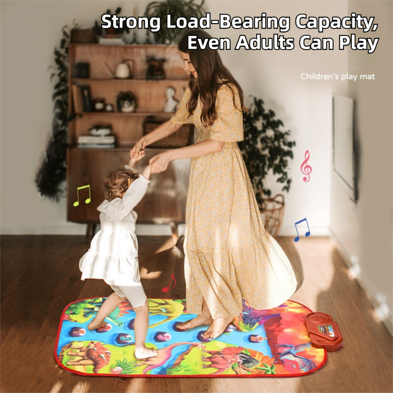2-Pack Kids Multifunctional Electronic Dance Mat(52x86CM) - Dinosaur & Transport Theme Play Mat with Sound Recognition for Early Education and Physical Exercise