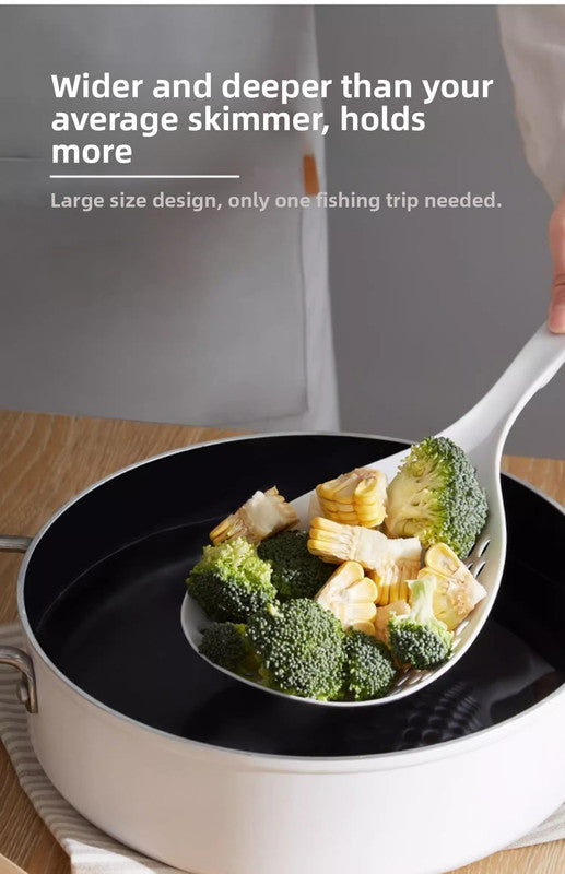 Cooking large batches of food has never been easier. This strainer scoop set is specifically engineered for efficiency and comfort. Unlike metal strainers that can transfer heat to the handle, this high-quality PP construction ensures the handle remains cool to the touch. The set includes two vibrant colours (White and Orange) to brighten up your utensil collection and allow you to separate usage for different food types if desired.