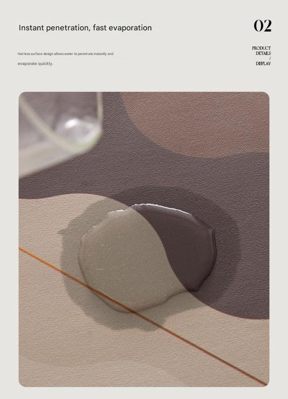 • Highly Absorbent: Made from diatom mud, this mat quickly absorbs water and prevents spills from spreading.