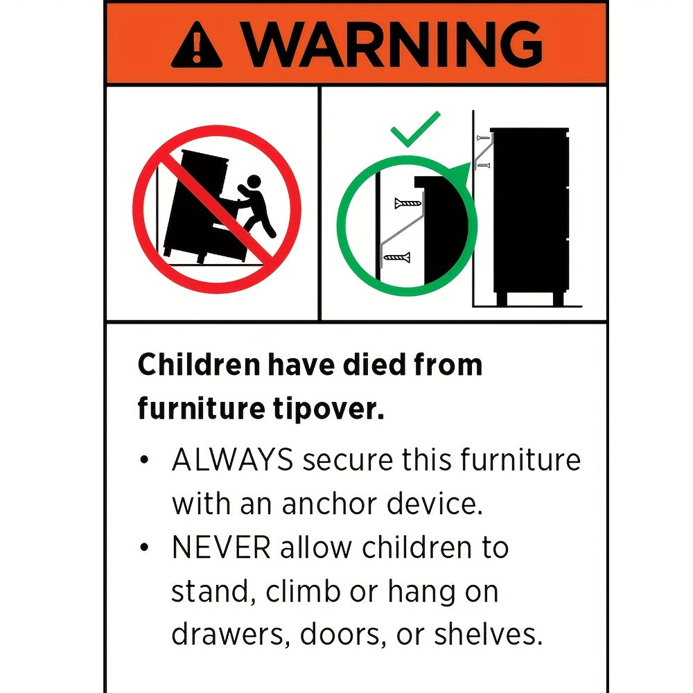 • NEVERallow children to stand, climb or hang on drawers, doors, or shelves.