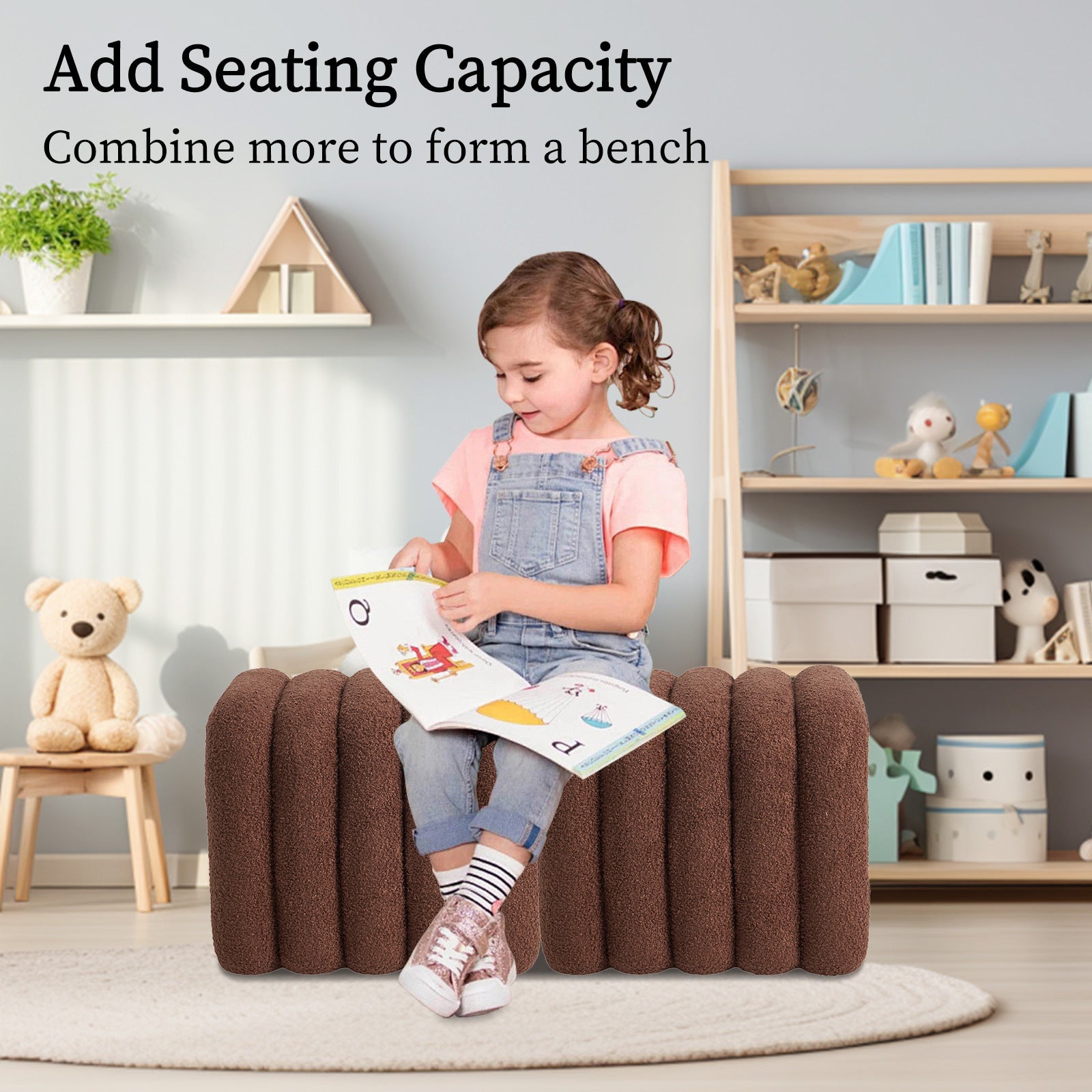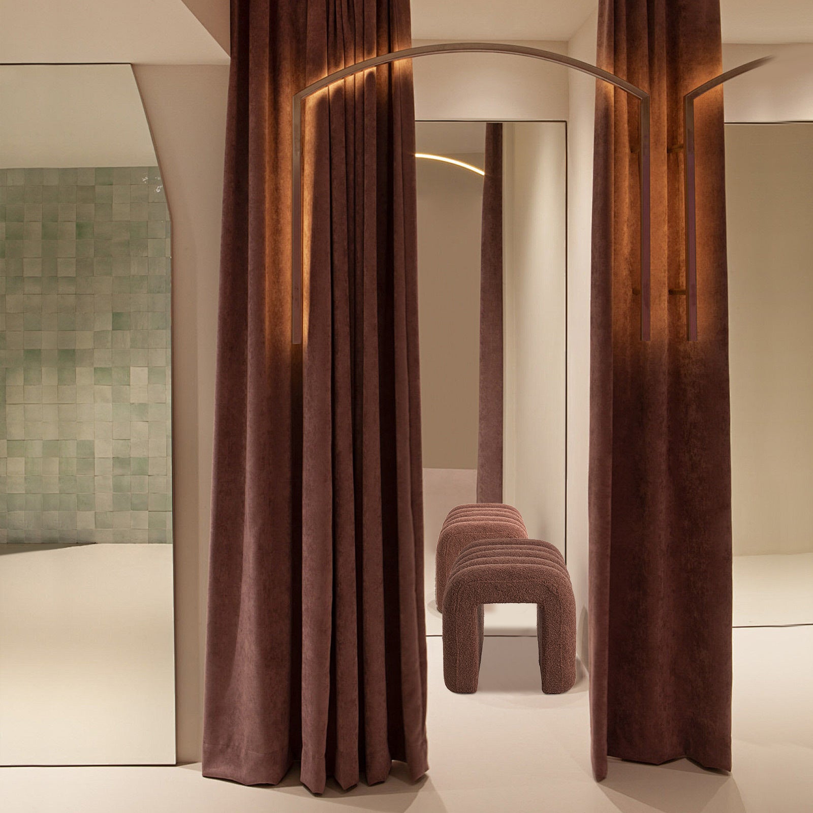 Bring cozy charm and contemporary elegance to your space with this arch-layered stool, crafted for both style and comfort in a warm, teddy-textured fabric for an inviting feel.