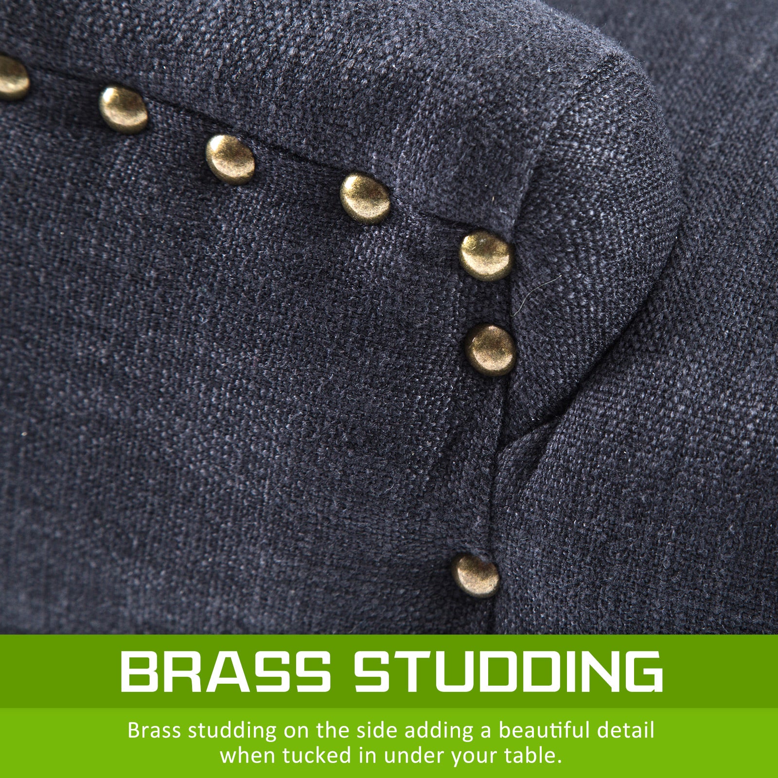 Upholstery Fabric: High-quality linen fabric with brass studs