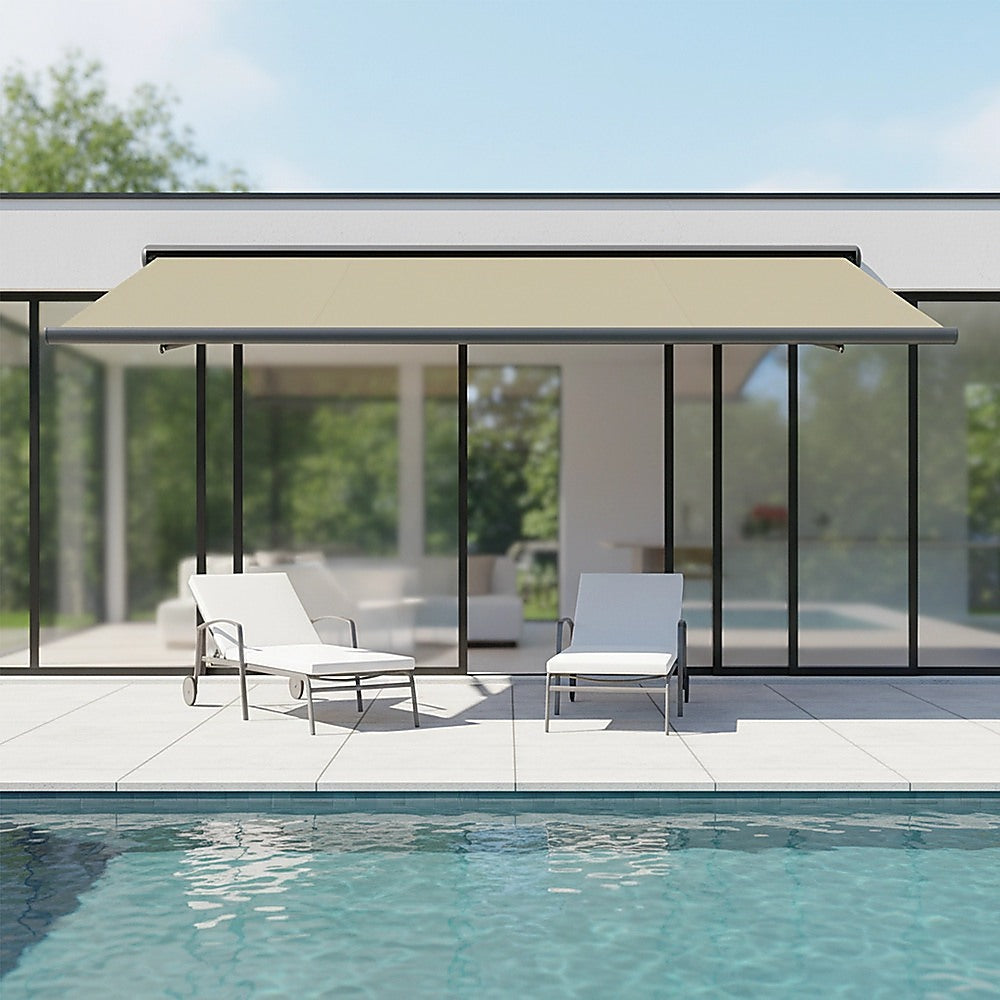 5.5m x 3.0m Retractable Folding Arm Awning Heavy Duty Full Cassette Motorised