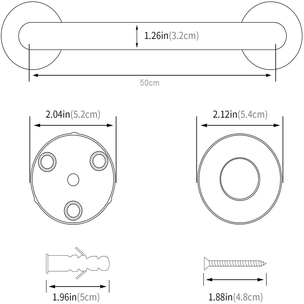 Easy Installation: Grab shower handle bar featuring a convenient design, it come with all the mounting screws and anchors for easy to install.