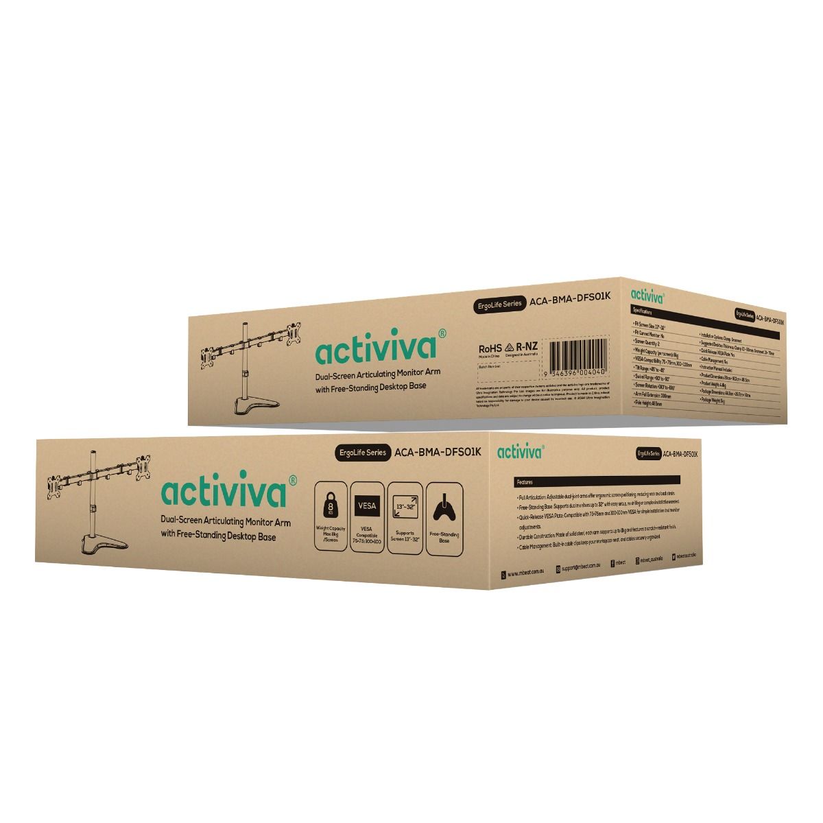 The activiva Dual-Screen Articulating Monitor Arm with Free-Standing Desktop Base provides the perfect solution for ergonomic comfort and workspace efficiency. With adjustable arms, durable steel construction, and a free-standing base, this arm supports dual monitors without the need for permanent installation, offering flexibility and convenience.