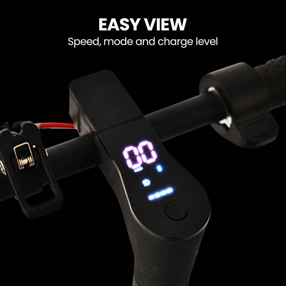 Keep track of your speed, mode, and battery life with the easy-to-read backlit LED display. The EverBrite LED headlight and brake light let you extend your adventures into the evening. When done, simply fold the scooter with a single touch and roll it away effortlessly.