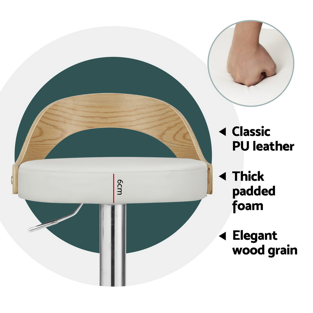 Want to add an elegant and contemporary feel to your space? ' Publia bar stools with elegant wood grain finish are just perfect. They're great for catchups over coffee with friends, a jam session with the band, or daily living. Not an ordinary one but stands out in every aspect, whether it's craftsmanship, style, upholstery, comfort, or quality that speaks for itself. It is something you would surely want to add to your space. You can style our Publia bar stools anywhere, from living rooms to kitchen and the bar section, they will effortlessly fuse in any décor and lend an elegant and contemporary feel to your space. Featuring curved bentwood seat with premium PU leather upholstery, our bar stools have soft padded seats, solid semi-circular footrest, sturdy black powder-coated/chrome pedestal base, SGS-tested gas lift for height adjustment, and floor protectors for ultimate stability and scratch-free floors. They also feature 360˚ rotatable seat so you can face any direction for ease of conversing with guests and family. Our Publia bar stools make a timeless piece of furniture, you can choose that best complements your space and suits your taste. ' Publia bar stools would make a luxurious addition to your space. Shop them today!