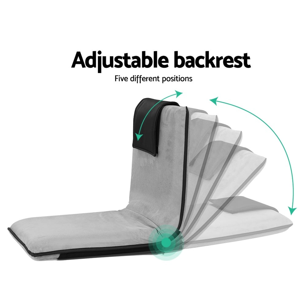 floor lounge sofa is designed to provide unmatched comfort and versatility. It combines practical features and elements to create a comfortable seating space for relaxation and leisure. The floor lounge is crafted with premium linen and deluxe flocking fabric. It exudes elegance and ensures a soft and cosy feel. And the heavy-duty steel frame guarantees durability and stability. Designed with your comfort in mind, the lounge chair features a headrest cushion that provides excellent head and neck support. And the adjustable backrest offers five different positions, allowing you to effortlessly find your preferred angle for reading, watching movies, or simply reclining. Furthermore, our floor lounge is designed with your convenience in mind. It boasts a foldable design that saves space, and the adjustable carry strap makes it easy to move around or in different rooms. It also has a zippered cover that can be removed for washing and cleaning. For added functionality, it's equipped with a storage pocket, which provides a space to keep your essentials within reach. Bring home this floor lounge chair to create a relaxing spot to unwind.