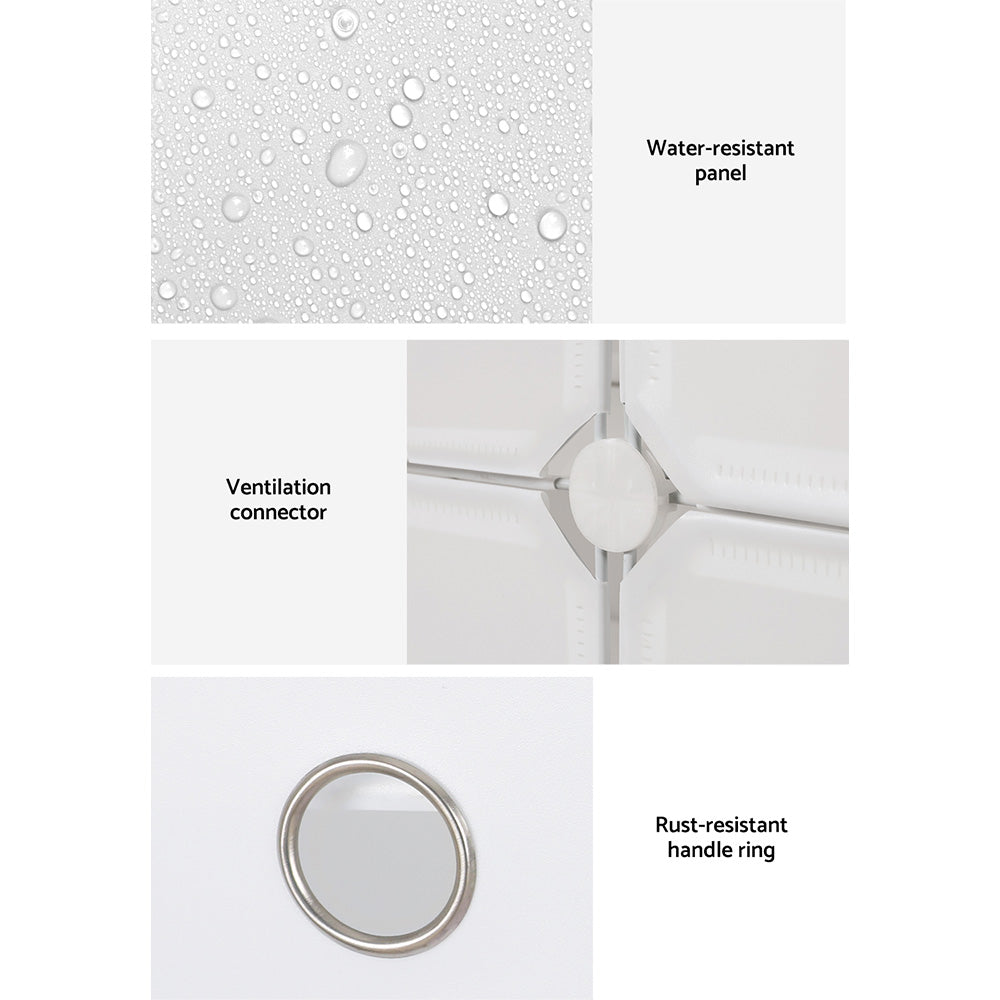 As your shoe collection grows, so should your shoe storage. An Artiss Shoe Cabinet is exactly what you need to keep loose shoes tidy and organised. Made from eco-friendly PP plastic and a strong steel frame, this multipurpose storage cabinet has a 2.5kg weight capacity per shelf, making it ideal for shoes as well as bags, coats or other items to help start your day. The micro-slit design between panels allows for easy ventilation, preventing bacteria growth, mould growth, and odours. Each panel is water-resistant with a rust-resistant handle ring for each door, making it easy to clean and maintain. Your purchase comes with accessories for two unique cabinet configurations, and shelves can be easily added or removed to store differently-sized shoes. You can even expand your shoe cabinet to fit your current storage requirements: simply visit our store and purchase additional units to multiply and expand. With so many options at your disposal, it's easy to see why the Artiss Shoe Cabinet is the right choice for your entryway, bedroom, or walk-in wardrobe.