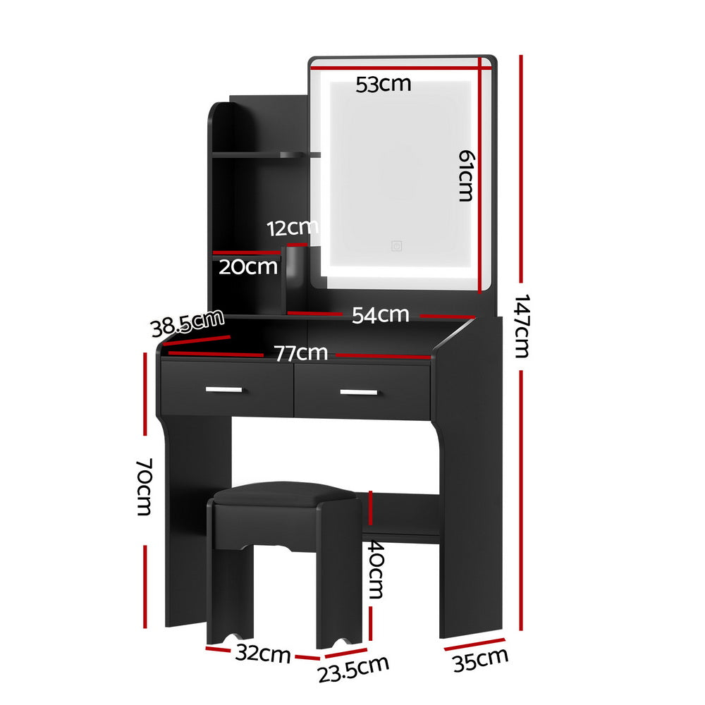 Upgrade your beauty routine with the LED Dressing Table. Featuring a Hollywood-style makeup mirror with an LED stripe, this vanity offers three adjustable light modes��warm, cool, and natural��for perfect lighting every time. The two spacious drawers ensure your beauty essentials stay neatly organised, while the anti-drop panel provides added safety and stability. The foam-padded stool adds comfort for extended use, and the sleek, easy-to-clean design ensures low maintenance. Ideal for bedrooms or professional settings, this modern vanity is the perfect blend of functionality and style.