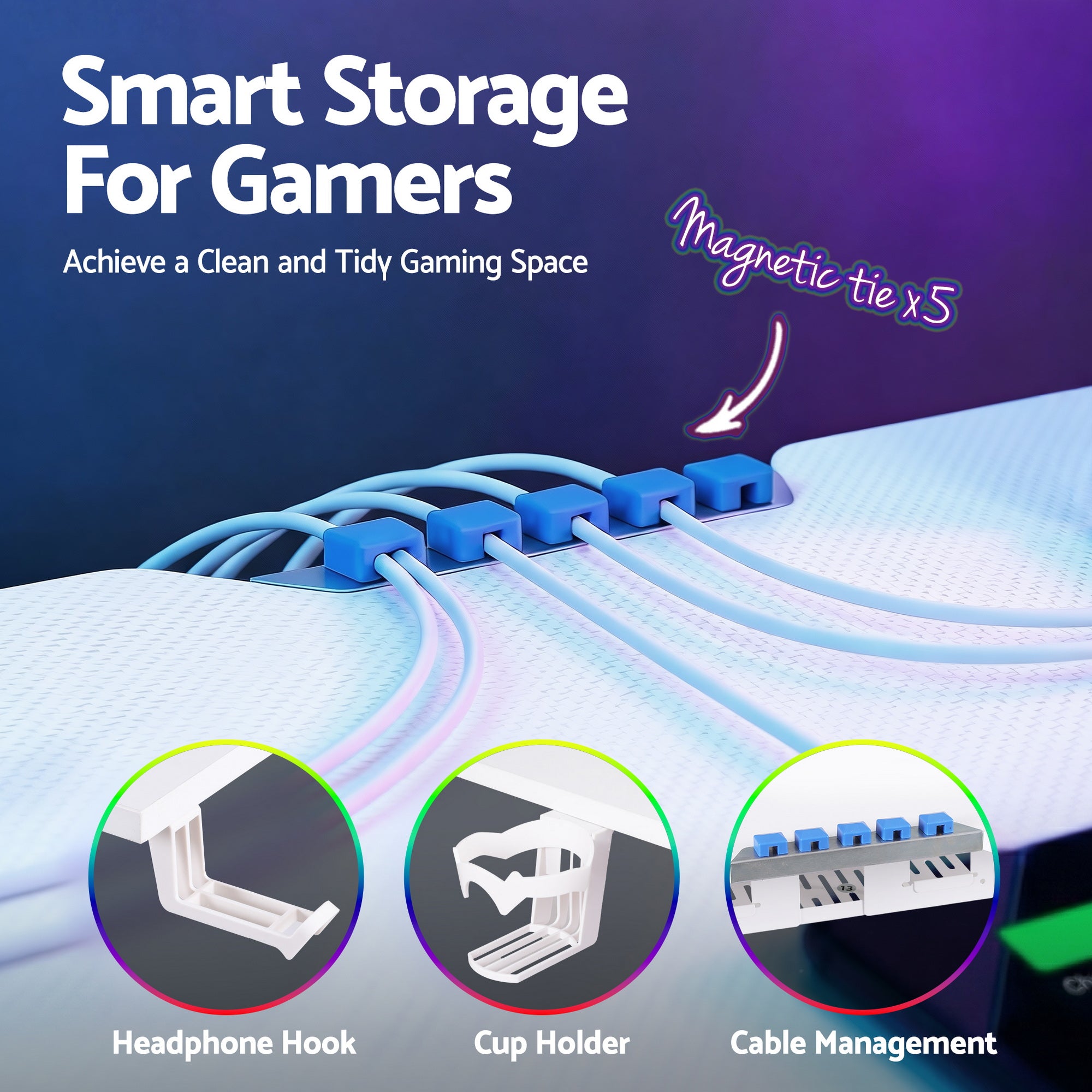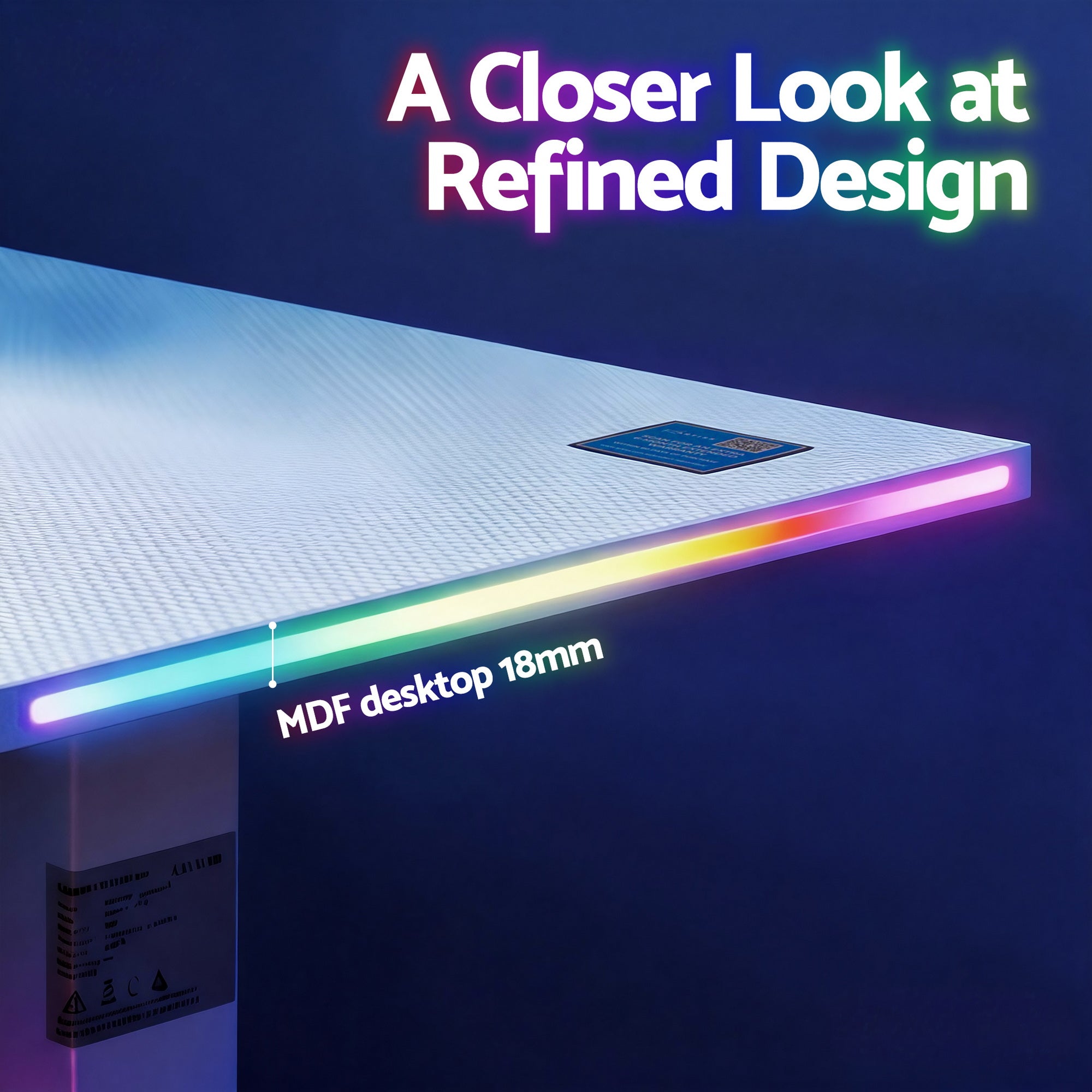 Designed for modern gamers, this Artiss gaming standing desk features electric height adjustment with memory control, RGB LED lighting, and a durable MDF desktop. Switch easily between sitting and standing while keeping cables organised for a clean gaming setup.