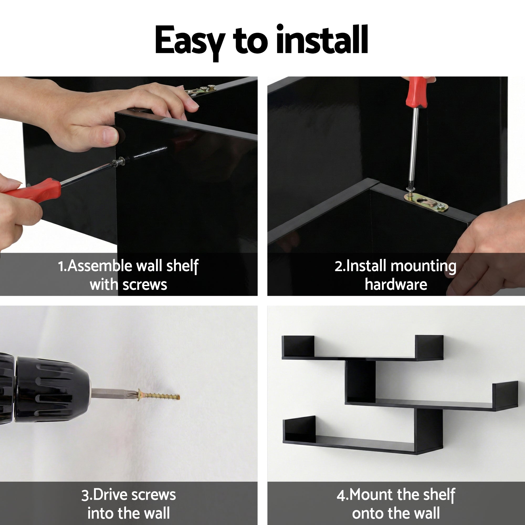 Transform blank walls into functional art with the Artiss Floating Wall Shelf, where minimalist design meets practical storage. It can function as bathroom shelves for adding over-the-toilet-storage space to accommodate bathroom accessories, or as floating nightstands in the bedroom, or as spice racks to expand kitchen storage, or as display shelves in the living room. The U-shaped shelves not only can prevent items from dropping over, but also enhance your home decor and imparting a feeling of sophistication and elegance to any room.