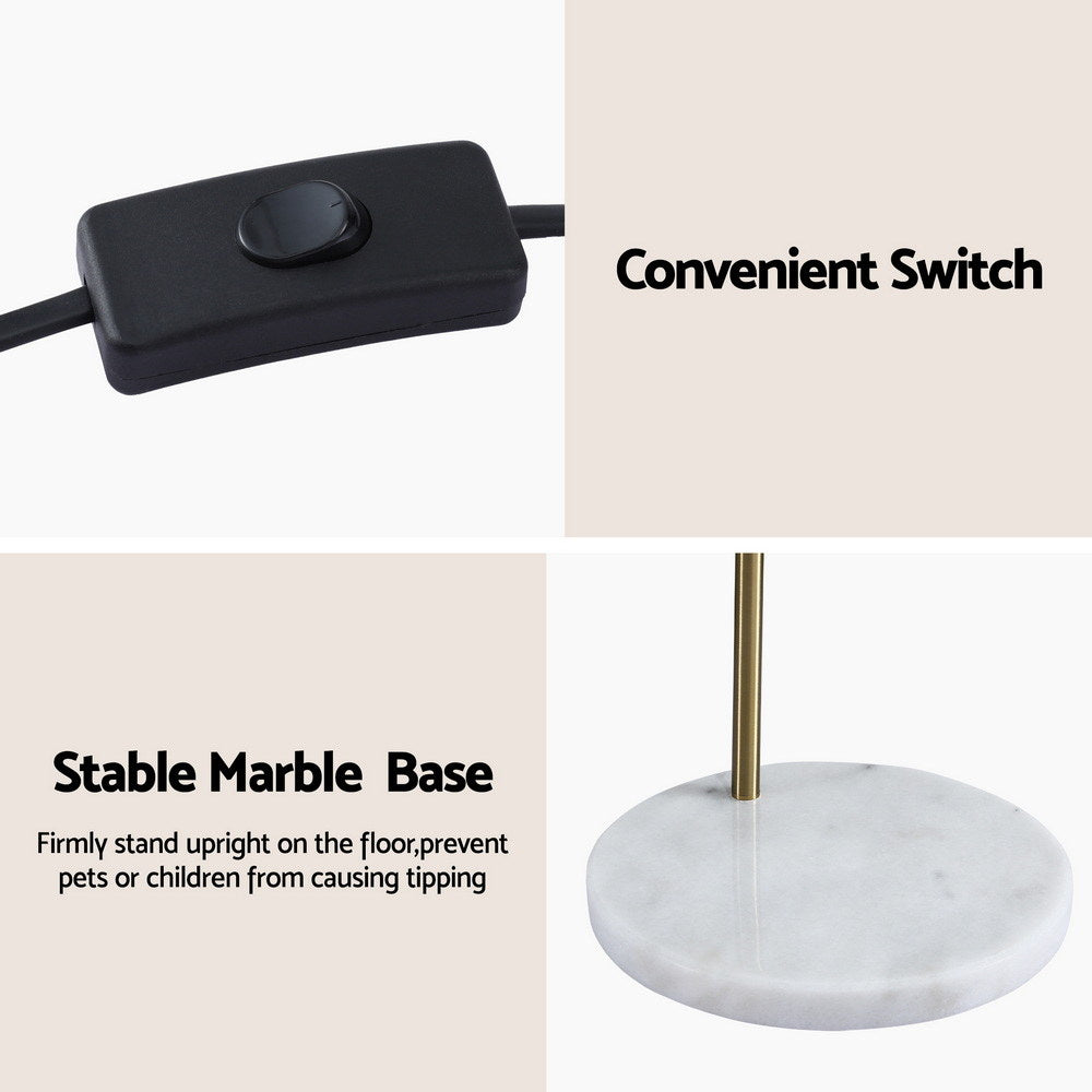 Illuminate your space with the Artiss Modern Arched Floor Lamp, a perfect blend of elegant design and functional brilliance. This lamp's sleek, curved frame extends over your sofa or reading chair, providing a focused, downward light ideal for reading or creating a cozy, inviting ambiance. Crafted with a premium brass finish and anchored by a heavy-duty marble base, it offers both a sophisticated look and exceptional stability. The tall, standing design ensures it makes a statement in any room, whether it's your living area, bedroom, or home office. With its simple, clean lines, this lamp seamlessly complements any contemporary or modern decor, bringing style, stability, and light to your favorite corner.