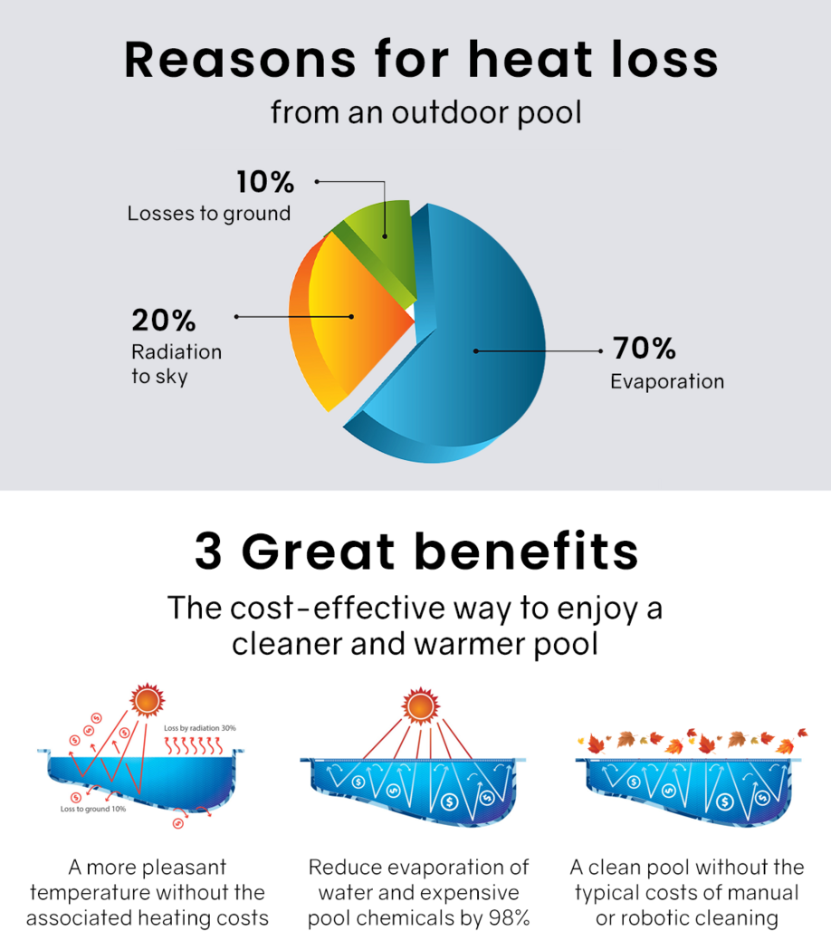 Your pool should be there for your leisure and not another chore, and it will be nice all year round with the cover denying access to any debris. The isothermal effect also has the benefit of inhibiting the negative effects of photosynthesis such as the proliferation of algae.