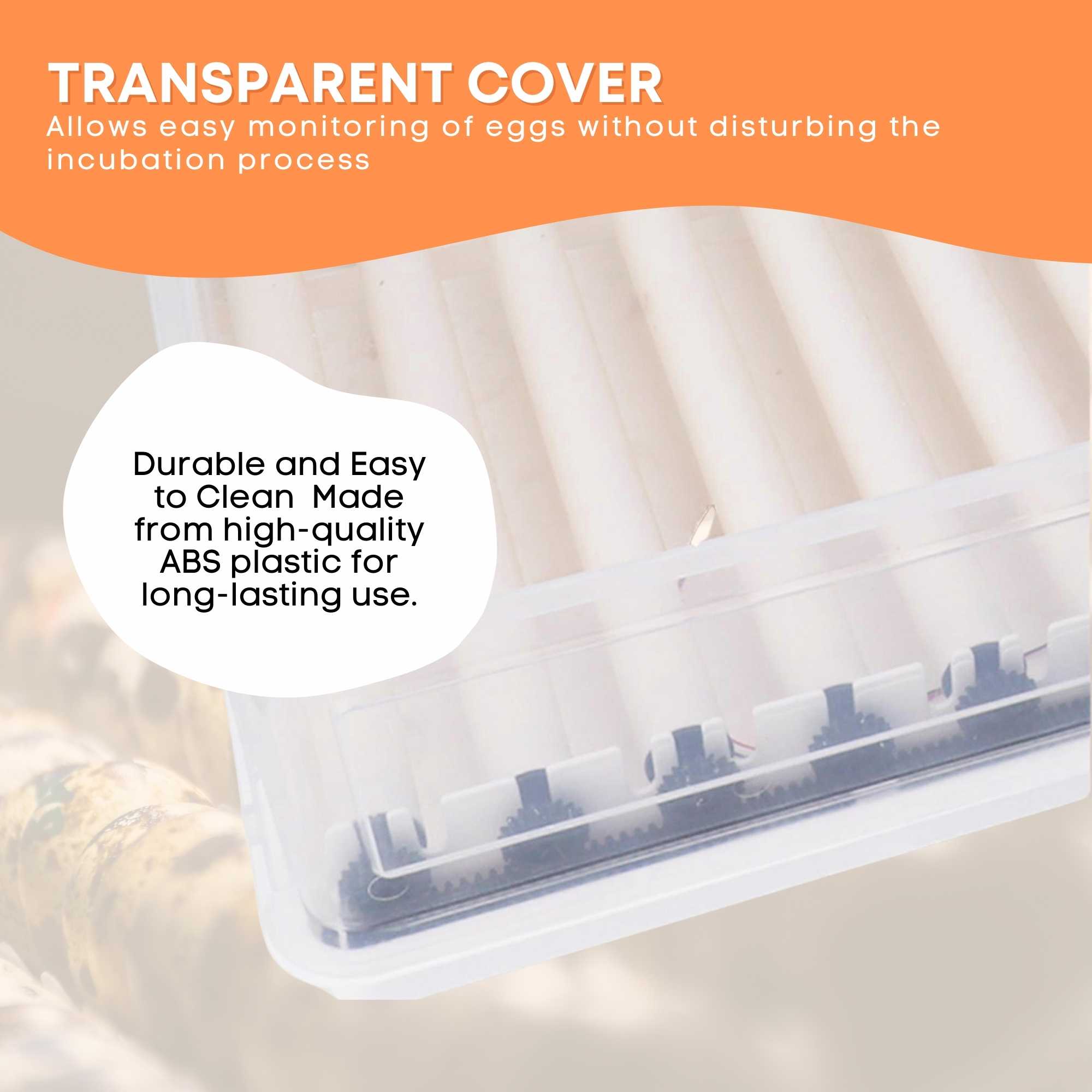 The 70-Egg Automatic Incubator is designed for poultry farmers and hobbyists looking for a reliable and efficient way to hatch eggs. This fully automatic incubator ensures precise temperature and humidity control, automatic egg turning, and even heat distribution, leading to a higher hatch success rate. Equipped with a reliable dual power system, it seamlessly switches to a 12V battery (not included) during outages, ensuring uninterrupted operation.
