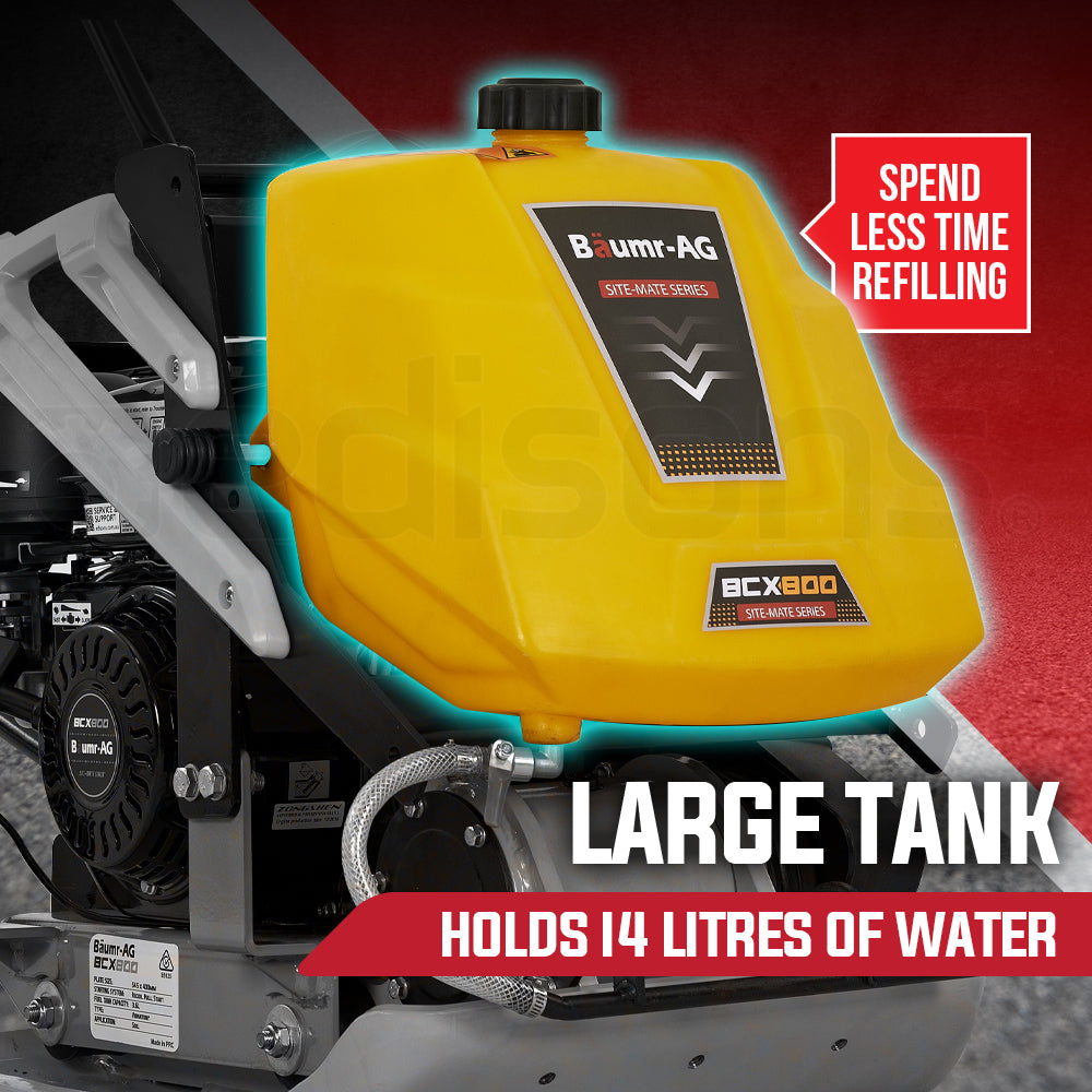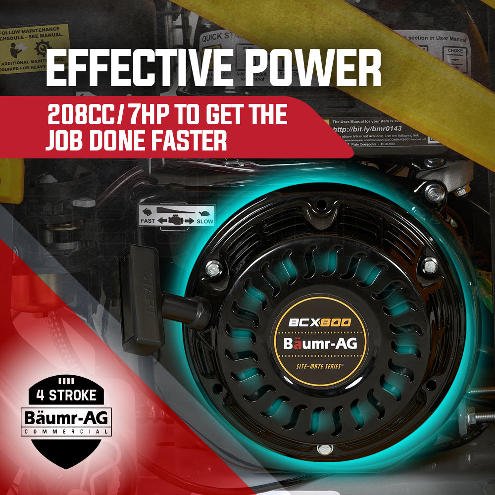 Take one look at the BCX800 Site-Mate Series Plate Compactor and it’s plain to see that this is a truly next generation design. With high-tech manufacturing employed from the ground up the BCX800 is of course precision robot welded to provide maximum strength and inhibit rust. Encased in the protective frame is a class-leading easy-start air-cooled 7HP 4-Stroke engine that is tough, reliable and efficient.