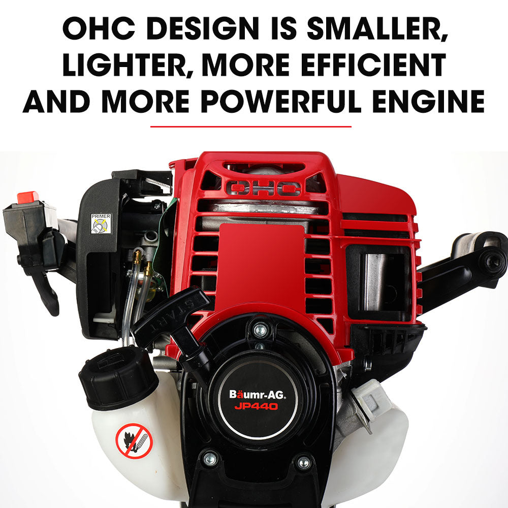 The JP440 4-Stroke Petrol Jackhammer is a full commercial grade unit. Utilising a high-quality Overhead Cam Motor and mechanical components, it is attached to a super-hardened reduction gear set. This provides high power, efficiency and reliability.