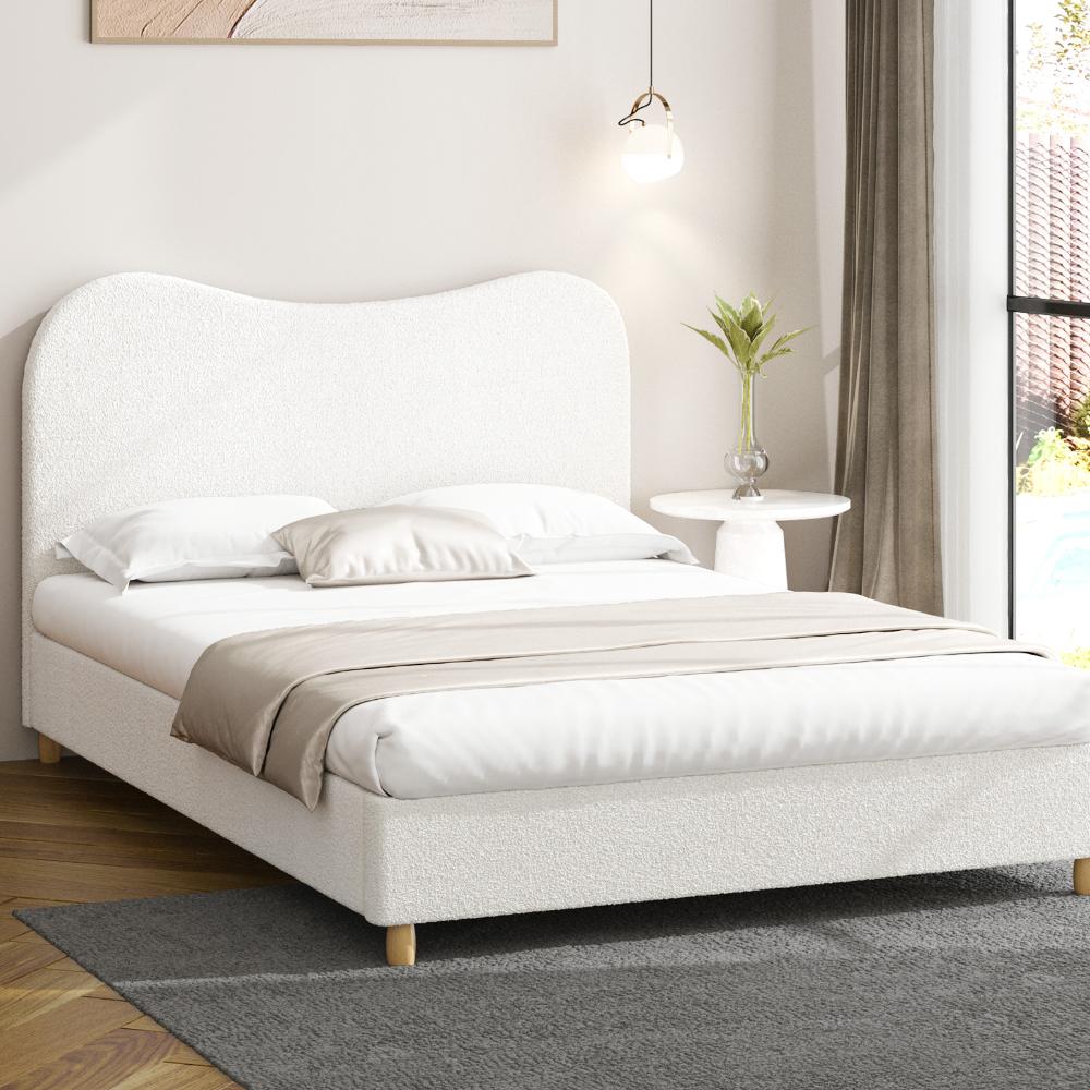 Immerse yourself in the plush comfort of our Boucle Bed Frame by Oikiture, where the opulence of the boucle texture adds sophistication and tactile warmth. The cloud-shaped headboard introduces a touch of enchantment, turning your bedroom into a whimsical haven for rest and relaxation.