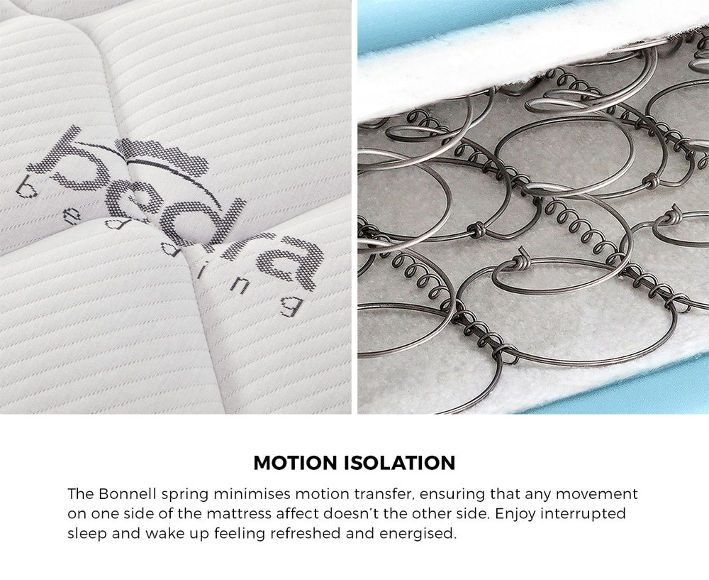 Best of all, the stylish bed frame also includes a comfortable Bedra Bedding Bonnell Spring mattress to complete the set. This high-quality spring mattress comprises a 7-layer construction with all the benefits of a Bonnell Spring system that provides motion isolation, anti-disturbance and full body support. Naturally, the highly breathable mattress complies with all required standards and certification and is hygienically safe from top to bottom and everything else in between. The Elsa Bed Frame. Made it yours to enjoy.