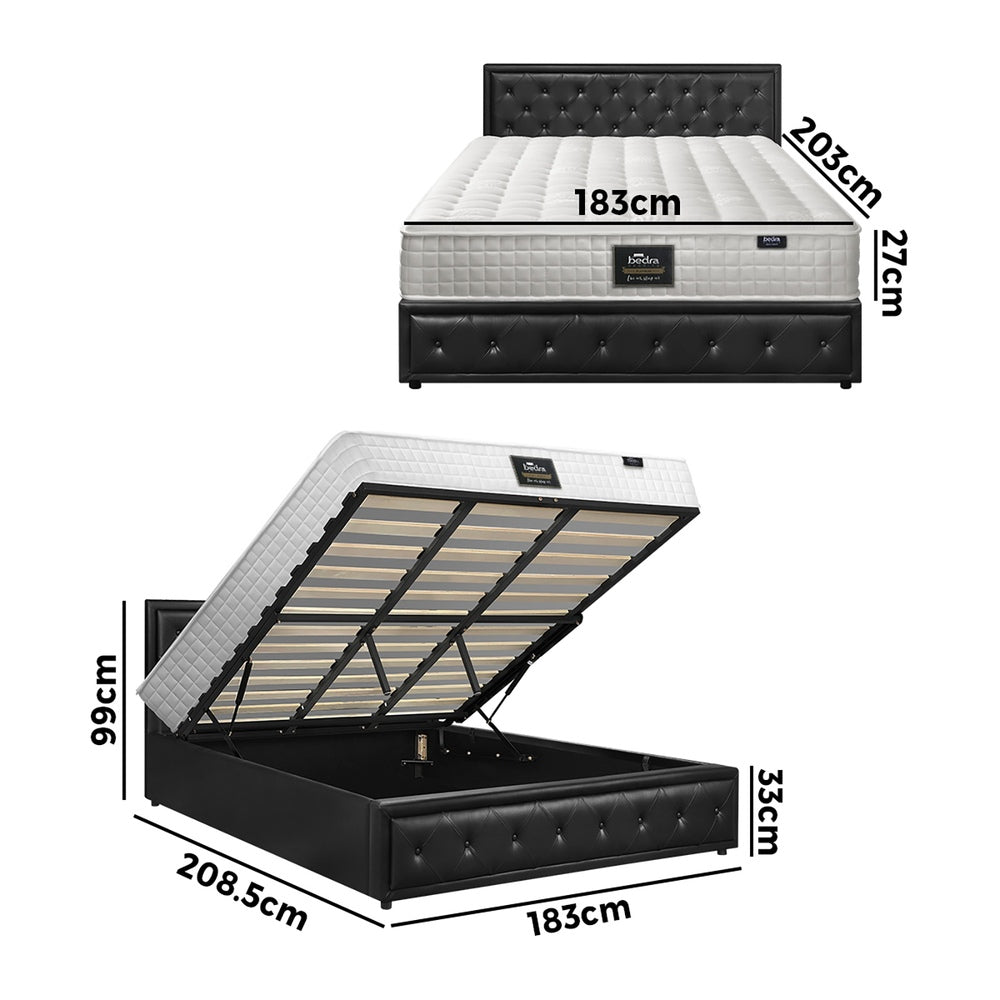 Best of all, the stylish bed frame also includes a comfortable Bedra Bedding Pocket Springs mattress to complete the set. This high-quality spring mattress comprises an 8-layer construction with all the benefits of an independent pocket springs system that provides motion isolation, anti-disturbance and full body support. Naturally, the highly breathable mattress complies with all required standards and certification and is hygienically safe from top to bottom and everything else in between. The Gas Lift Bed Frame. Made it yours to enjoy.