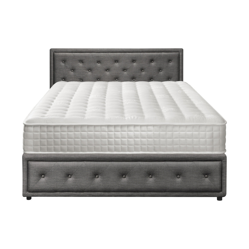Best of all, the stylish bed frame also includes a comfortable Bedra Bedding Pocket Springs mattress to complete the set. This high-quality spring mattress comprises an 8-layer construction with all the benefits of an independent pocket springs system that provides motion isolation, anti-disturbance and full body support. Naturally, the highly breathable mattress complies with all required standards and certification and is hygienically safe from top to bottom and everything else in between. The Oikiture Gas Lift Bed Frame. Made it yours to enjoy.