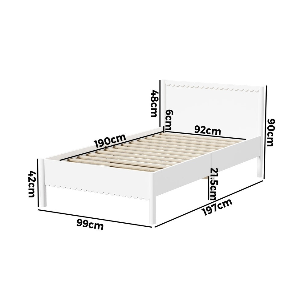 With its unique scalloped trim design, the Oikiture Kids Bed Frame hints of a playful and creative vibe to liven up your child’s sleepcapades. Clean and uncluttered, the charming bed frame is an oasis of calm and harmony that will match well with your favourite mattress and other bedside furniture.