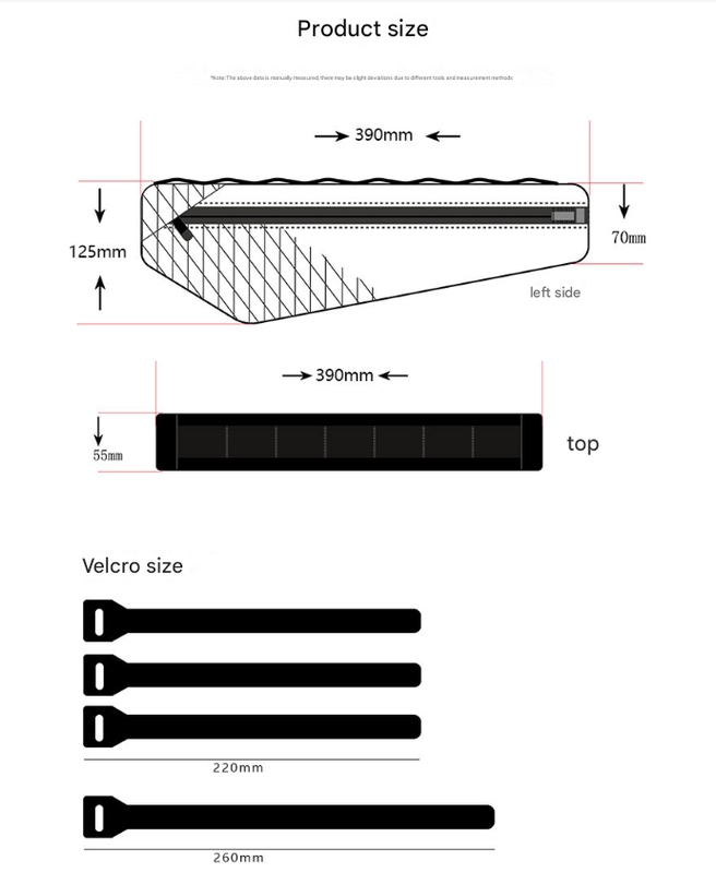 Secure & Adjustable Multi-Point Mounting: Features multiple reinforced loop points and includes four strong, removable Velcro straps (three 220mm, one 260mm) for a highly stable and customizable fit on various bike frames. Ensures the bag stays securely in place even on rough terrain.