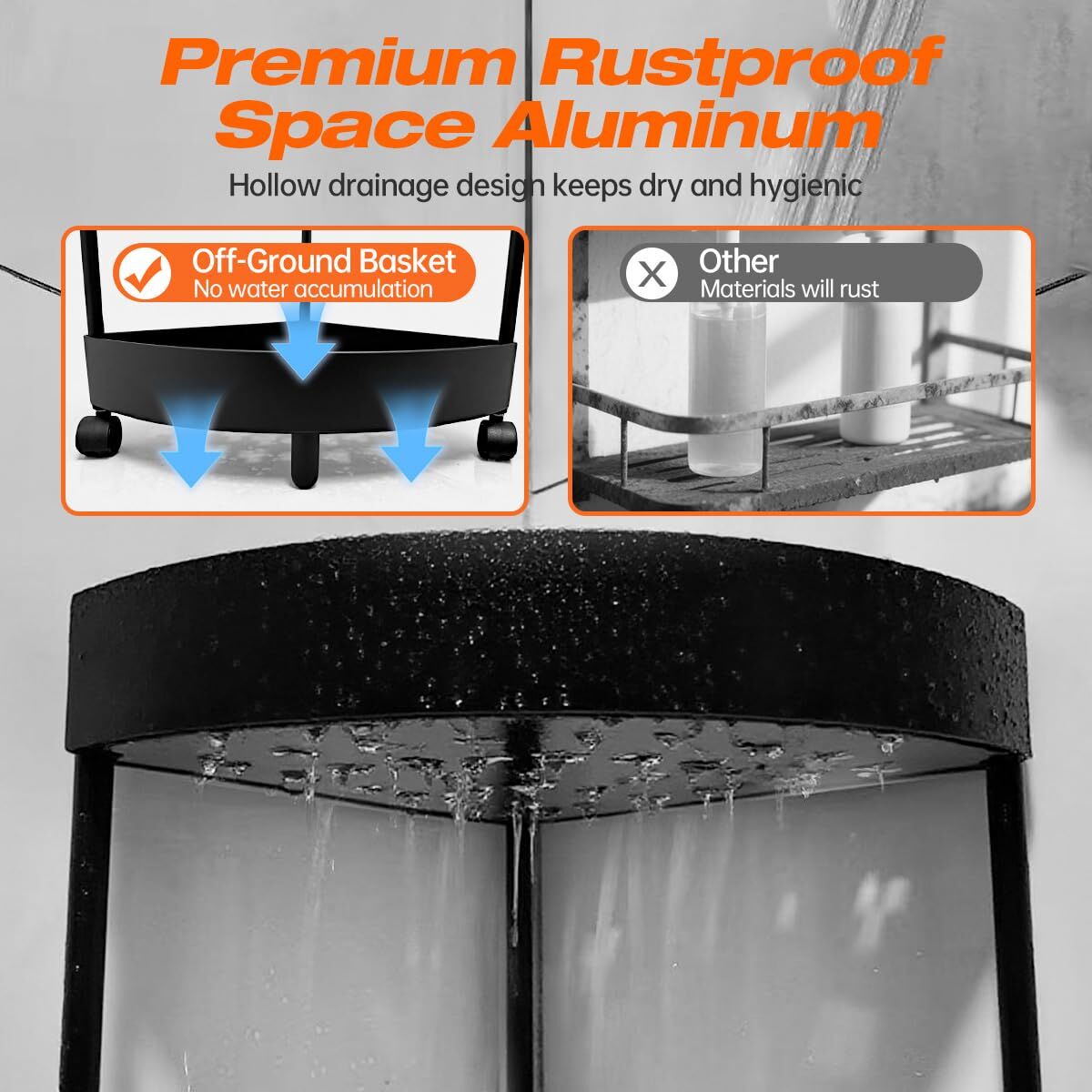 Constructed from lightweight yet sturdy rust-resistant aluminum, the unit withstands daily use and humid environments while maintaining a clean, modern look. Each of the three tiers features perforated surfaces that allow water to drain quicklyperfect for shower areas or wet zoneswhile rounded edges enhance safety and prevent snags. A built-in soap dish with integrated hooks offers extra utility for razors, sponges, or small towels.