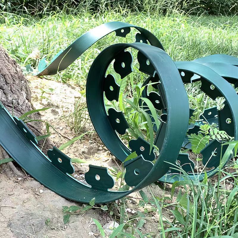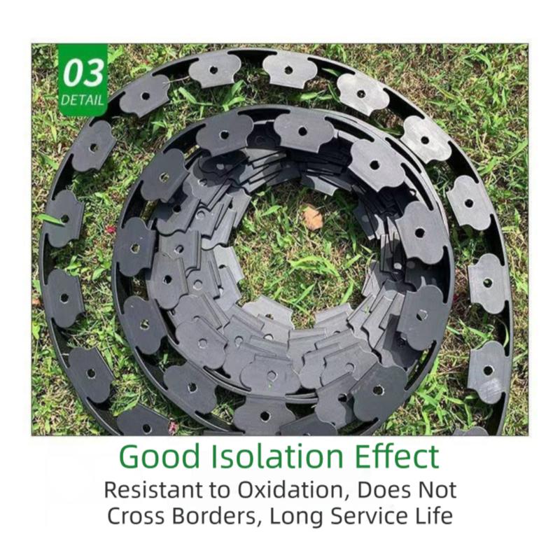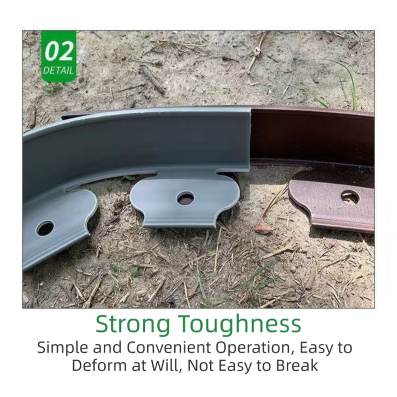 Installation Tip: To achieve a straight line, place the edging in the desired location and secure it with the provided stakes. For curved designs, the flexibility of the PE material allows for gentle bending.