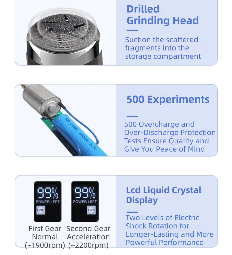 Achieve salon-quality smooth feet at home with this portable, electronic foot file. Designed to safely and effectively remove rough skin and stubborn calluses, this device features three different quartz sanding heads and a dual-speed control to customize your exfoliation. The integrated LCD screen, auxiliary light, and debris suction capability ensure a clean, precise, and comfortable pedicure experience.