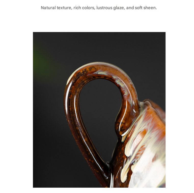 Indulge in a unique drinking experience with this exquisite ceramic cup, featuring a stunning retro kiln-glazed finish. Each cup boasts a distinctive "yao bian" or kiln-change glaze, where colors beautifully blend and transform during firing, making every piece one-of-a-kind. Perfect for your morning coffee, a relaxing afternoon tea, or enjoying a warm glass of milk, this beautifully crafted mug adds a touch of artistic sophistication to your daily routine. It also makes for a thoughtful and memorable gift or wedding favor.