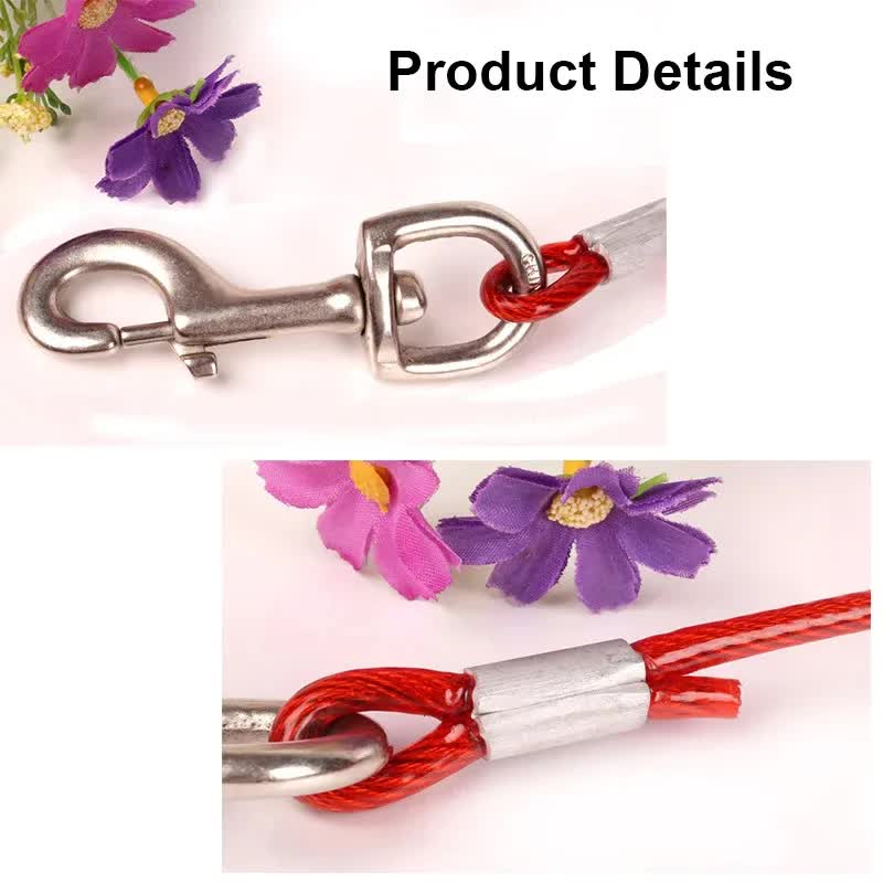 Secure your beloved pet with this highly durable, heavy-duty Steel Wire Dual-Head Dog Tie-Out Cable Leash. Ideal for pet owners in Australia needing a reliable solution for outdoor tethering or walking two dogs simultaneously. The robust steel construction ensures maximum strength and chew resistance, providing safety and peace of mind for you and your dog during yard time or outdoor adventures.