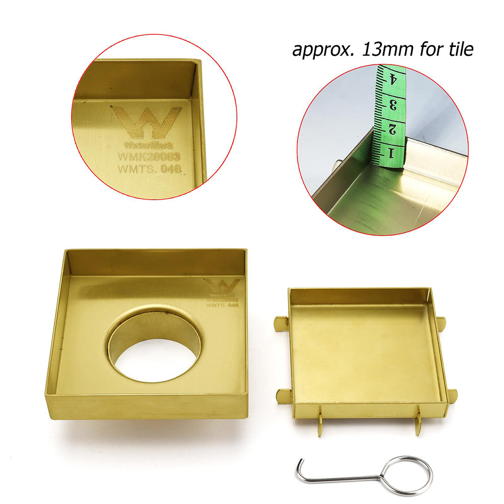 Brushed Gold 100mm Square Tile Insert Floor Drain Tiny Shower Grate 50mm Waste