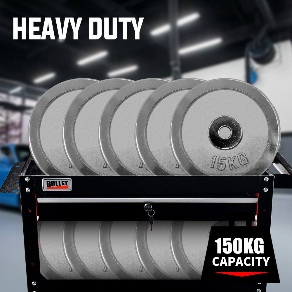 The Bullet 3-Tier Steel Tool Cart is a must-have for tackling jobs anywhere around your garage, warehouse or workshop. This lightweight and manoeuvrable storage solution has a load capacity of 150kg, plenty for all your tool and accessory transport needs.