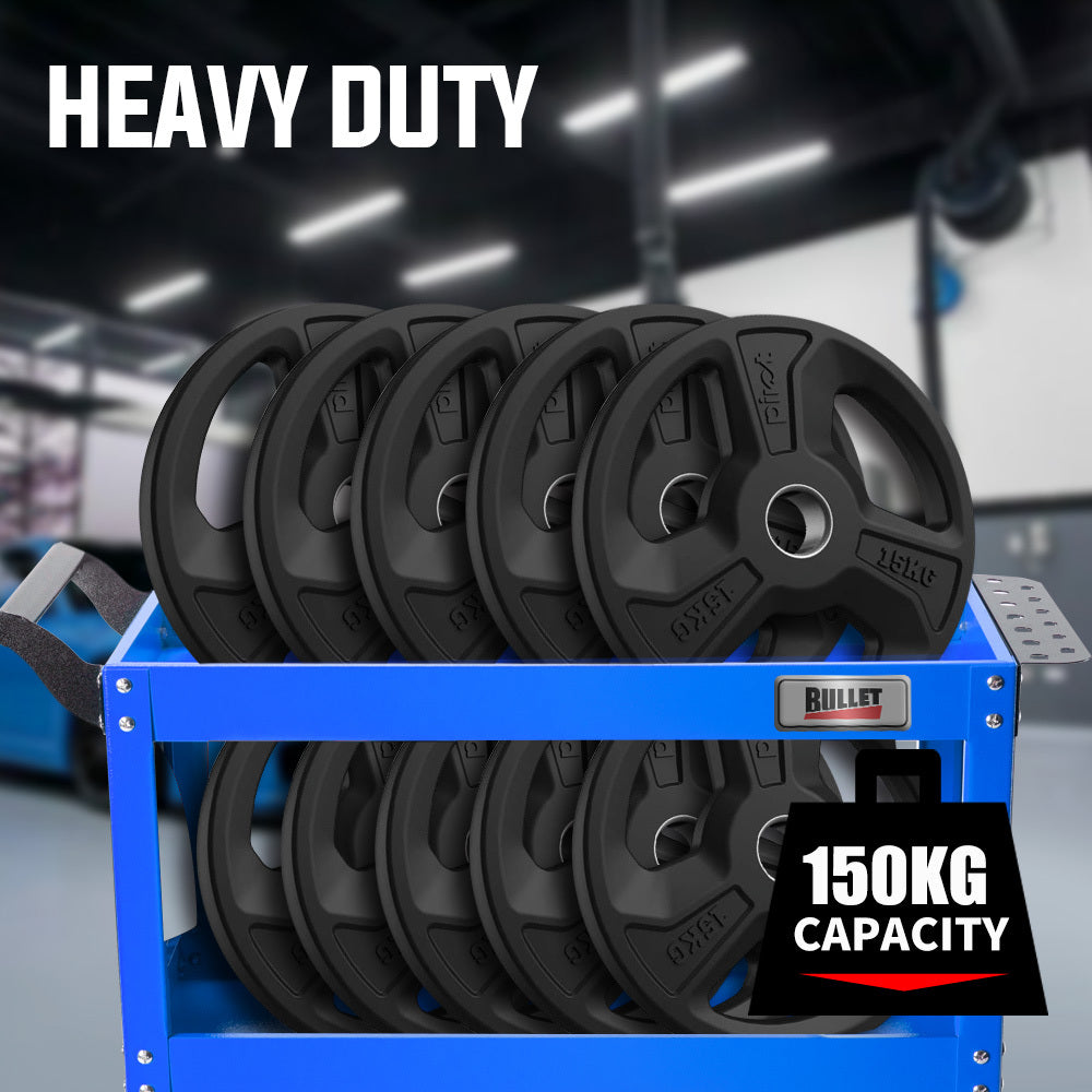 The Bullet 3-Tier Steel Tool Cart is a must-have for tackling jobs anywhere around your garage, warehouse or workshop. This heavy-duty manoeuvrable storage solution has a load capacity of 150kg---plenty for all your tool and accessory transport needs!