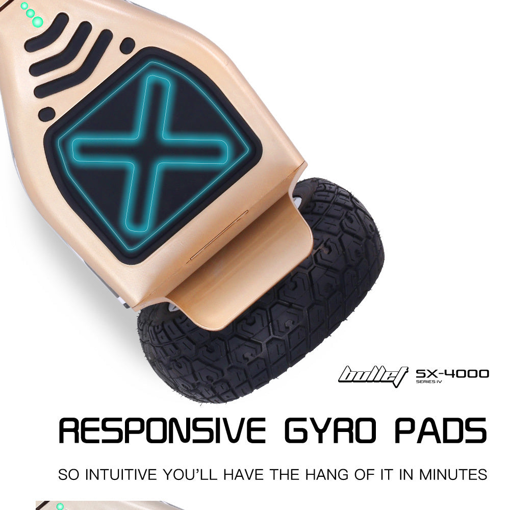 Experience a next level hoverboard with the state-of-the-art SX-4000. Its high-speed chipset reacts instantly to your bodys movements, offering highly responsive acceleration, turning, and reversing.