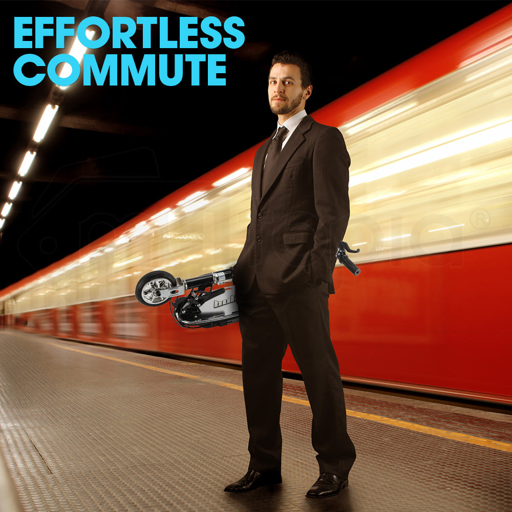 With a tough frame that combines aluminium and high-tensile steel riders of up to 80kg can be accommodated. You can customise the to your requirements thanks to the quick-release height-adjustable handlebars.