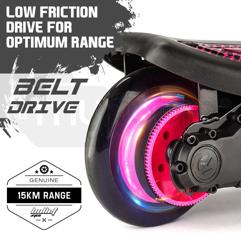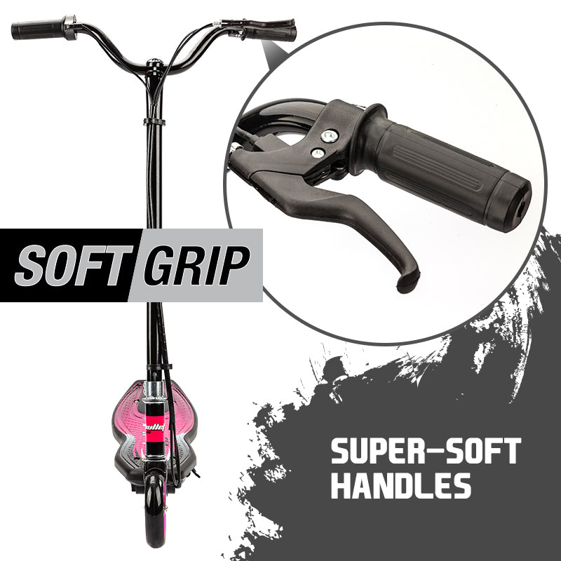 The ZPS electric scooter boasts striking pink decals on the FlowGripTM deck which offers plenty of control for safe riding. Thanks to the 140 watt motor it can zip along at speeds of up to 15km/h, which is fast enough for maximum fun, without causing chaos in the local park.