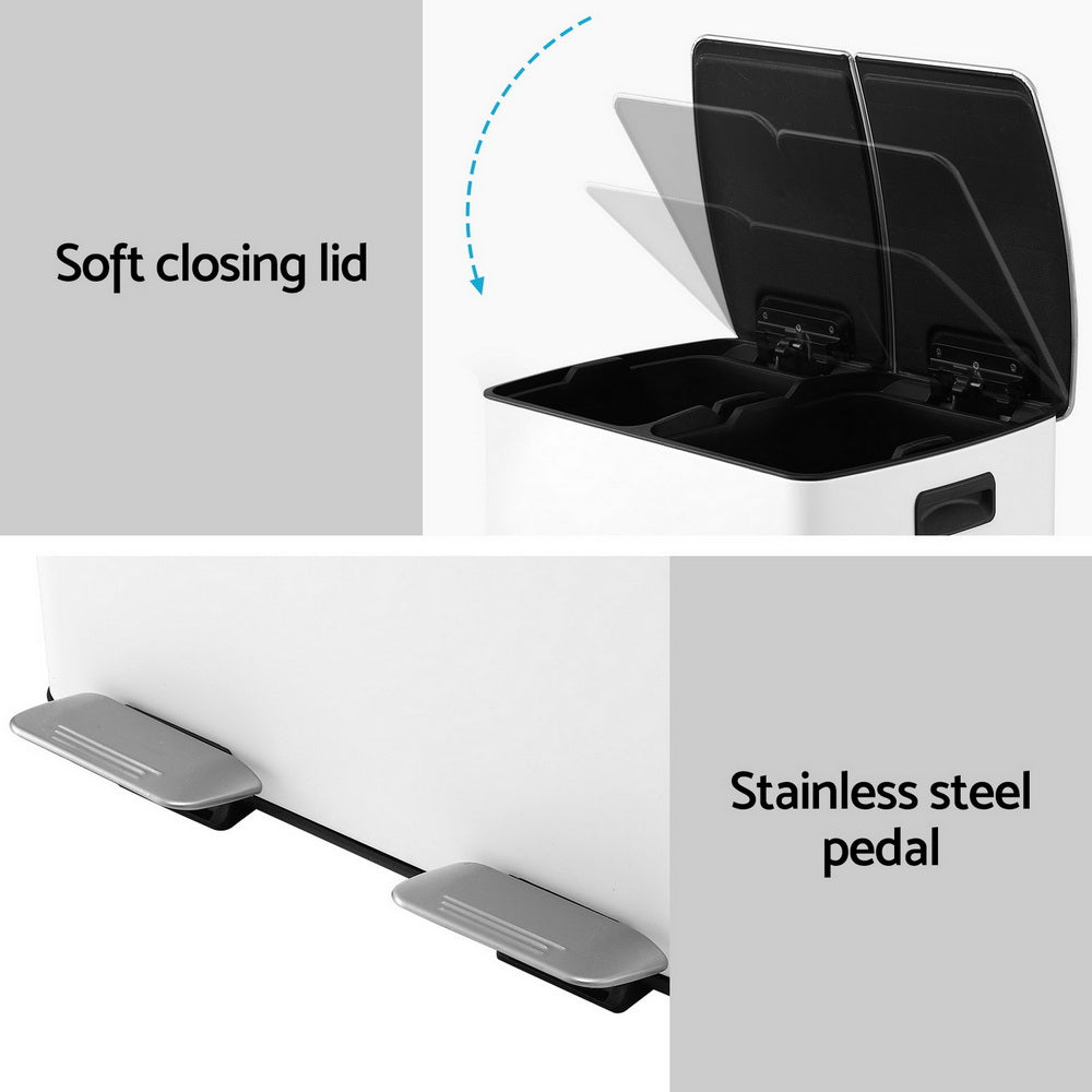 Introducing the Cefito Pedal Bin, a sleek and modern solution for your waste management needs. Crafted from sturdy carbon steel and featuring a contemporary design, this bin is built to last. Its anti-rust and waterproof properties ensure long-lasting durability, while the stainless pedal allows for easy and hygienic operation. With its soft closing mechanism, the bin provides a quiet and seamless experience. Its modern rectangular shape and dual-compartment design make it perfect for easy garbage sorting. Each bin has a generous 20L capacity, providing a total of 40L for all your waste disposal needs. Additionally, this bin is not only durable but also easy to clean, making maintenance a breeze. Upgrade your waste management system with the Cefito Pedal Bin today.