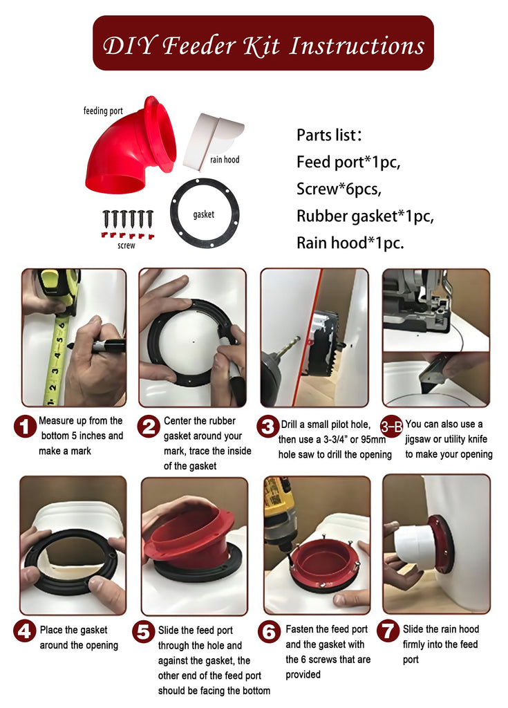 DIY Port PVC Gravity Fed Chicken Feeder Use to make a feeder from Buckets Barrels Bins.