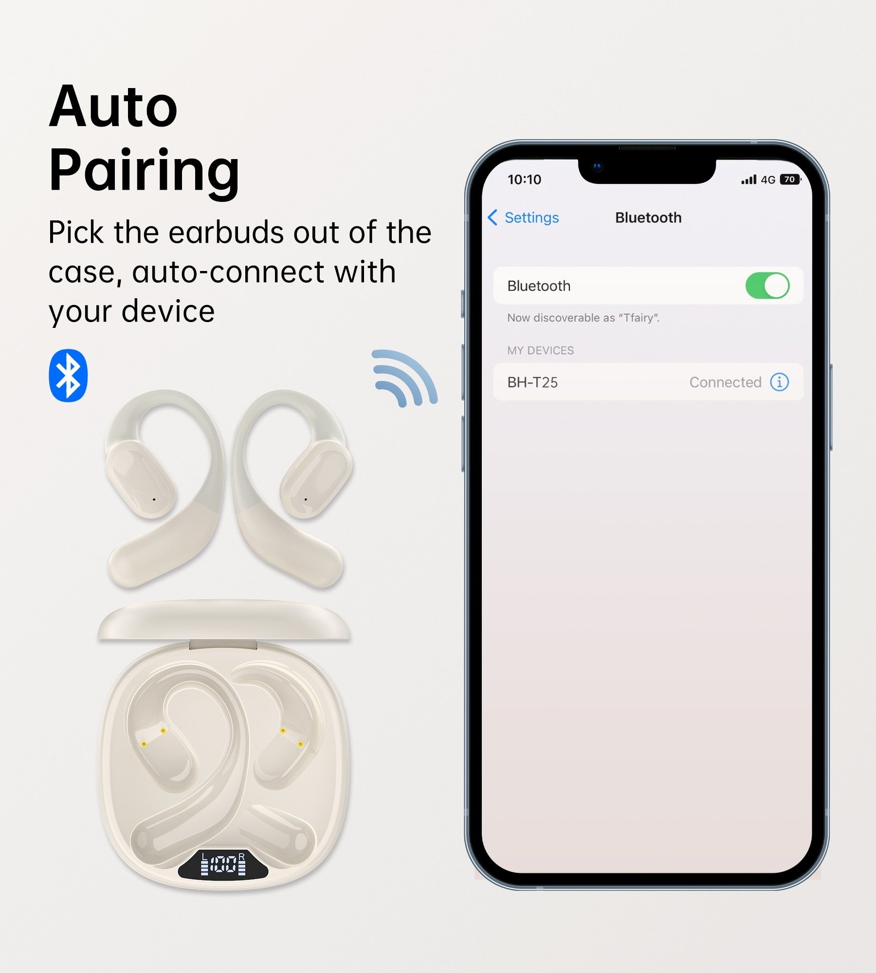 BH-T25 OWS Painless New Concept Bluetooth Earbuds V5.3 TWS White