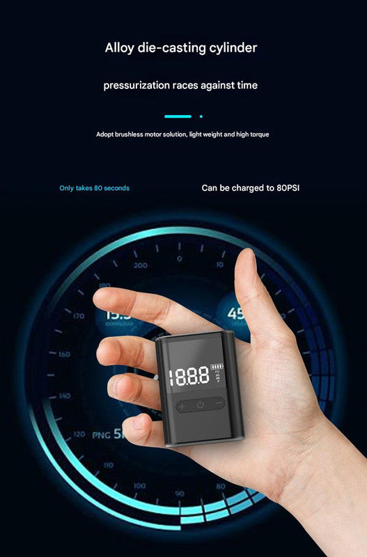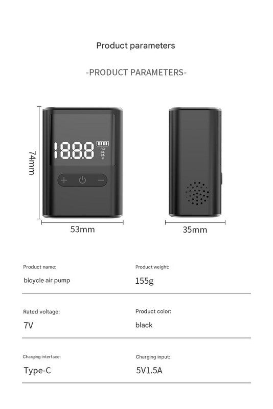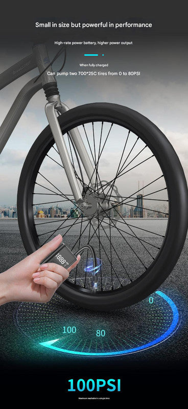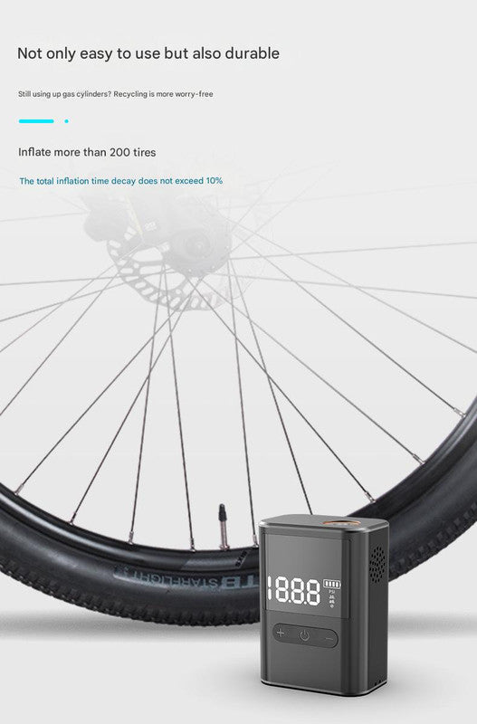 Experience the convenience of portable inflation with our Compact Digital Display Air Pump. This device is designed to quickly and accurately inflate bicycle tires, sports balls, and other inflatables up to 100 PSI. The digital display provides clear, real-time pressure readings, and the automatic shut-off feature ensures you don't over-inflate.